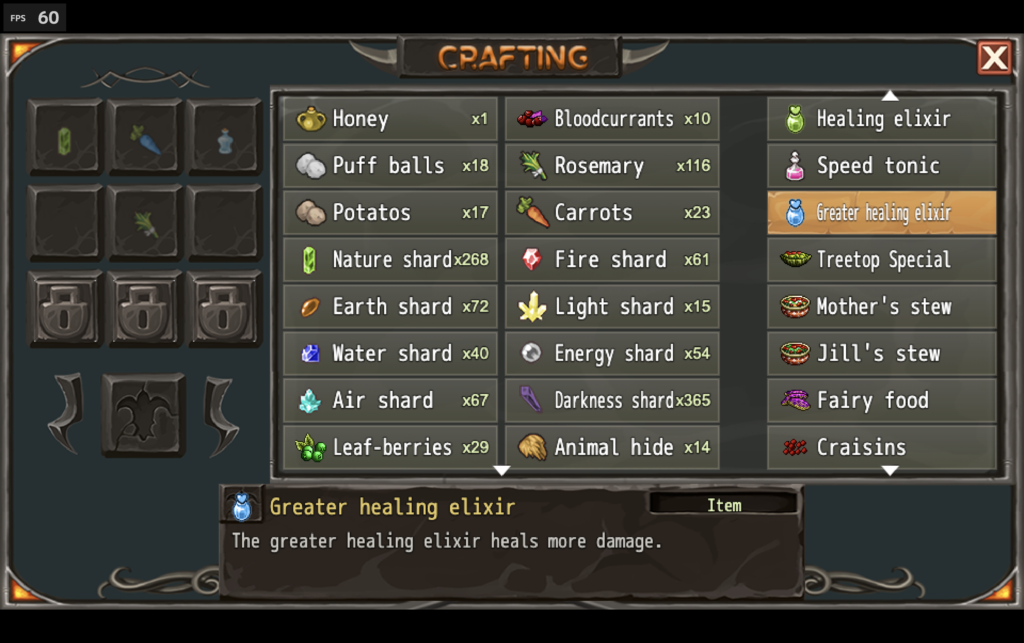 Phoenix’s crafting plugin gave me all that, and we modified it in our game so players can examine recipes while you craft items, removing the need to keep track.
