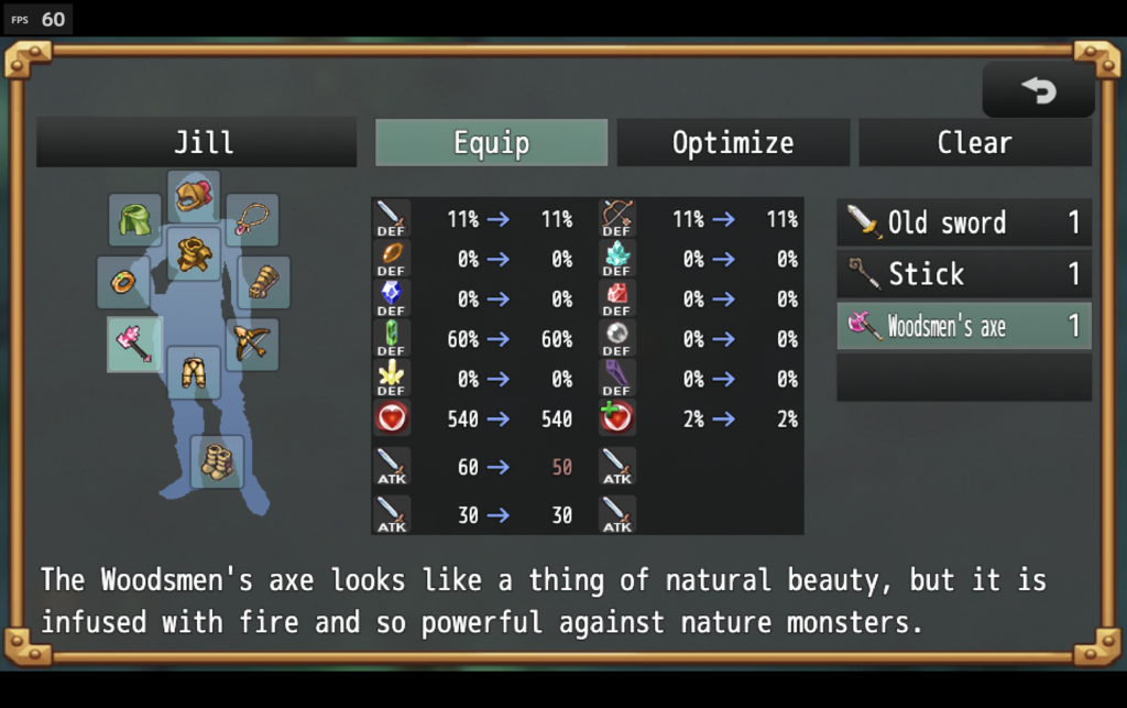 Phoenix’s excellent plugins also include the alternate equipment menu, which we modified to fit the custom skill system used in my game: